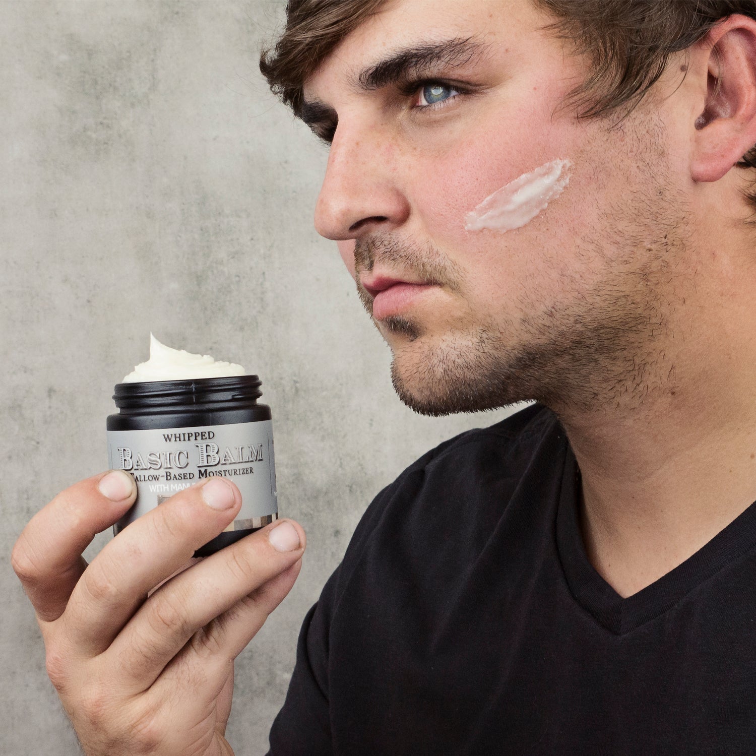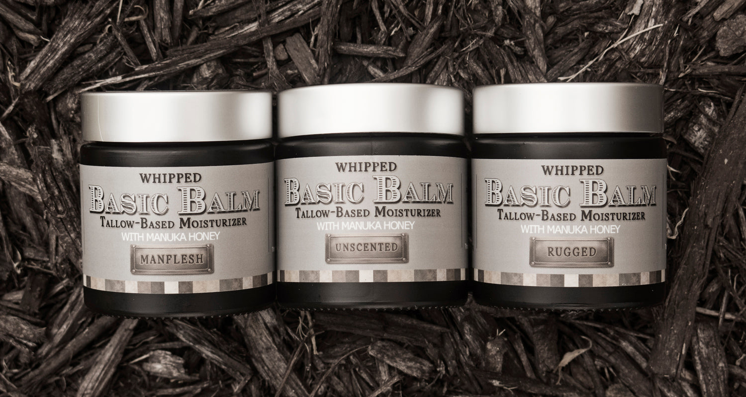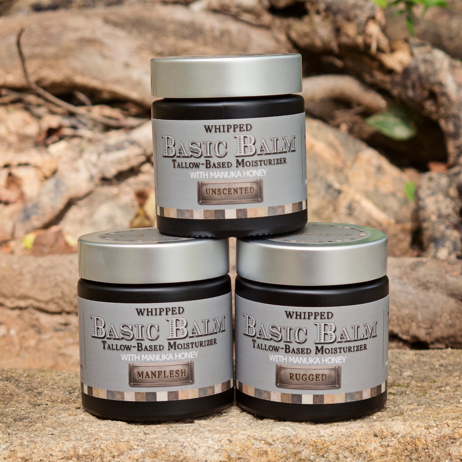 Thompson's Tallow BASIC BALM is a whipped, tallow-based allover face & body moisturizer. 100% grass-fed, pasture-raised American beef suet tallow is the superhero with ultralight, fast-absorbing "skintastic" Abyssinian oil as the essential sidekick! This skin-loving dynamic duo will come to the rescue for your skin challenges. Tallow is used by many with skin issues such as dryness, cracking, redness/irritation/inflammation, chaffing, chapping, acne, rosacea, eczema, sagging, fine lines & wrinkles, hyperpigmentation, razor burn, & more. This all-natural, anhydrous (waterless) balm contains no synthetic emulsifiers, stabilizers, or preservatives. Also features skin-nourishing ingredients from the beloved bees - including raw New Zealand manuka honey, USA beeswax, & propolis. This is our basic tallow & honey balm formula but no less sensational! Experience for yourself this fine formula for superior skin!